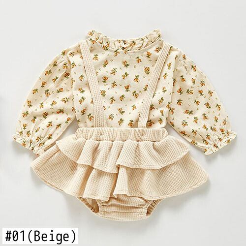 スプリングオータムフローラルブラウス ロンパース オールインワン ドレス コットン 春物 秋物 花柄 mi534896989731