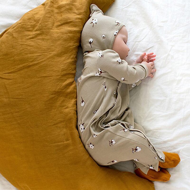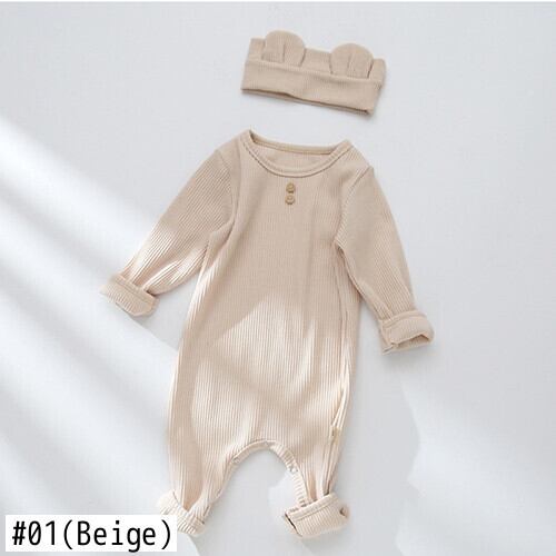 スプリングオータムロンパース オールインワン 長袖スリーブジャンプスーツ オールインワン ロング コットン 帽子 春物 秋物 mi5385032540171