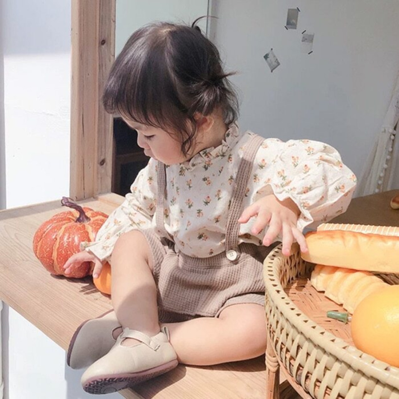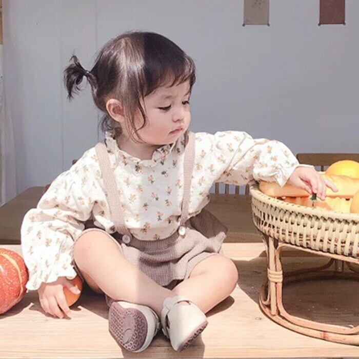 ヴィンテージスプリングオータムフローラルブラウス シャツ ロンパース オールインワン ドレス コットン 春物 秋物 花柄 ビンテージ mi5348996852090