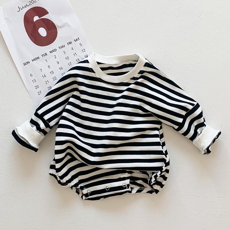 スプリングオータム長袖スリーブストライプスタイルジャンプスーツ オールインワン ロング コットン 春物 秋物 mi5321297700665