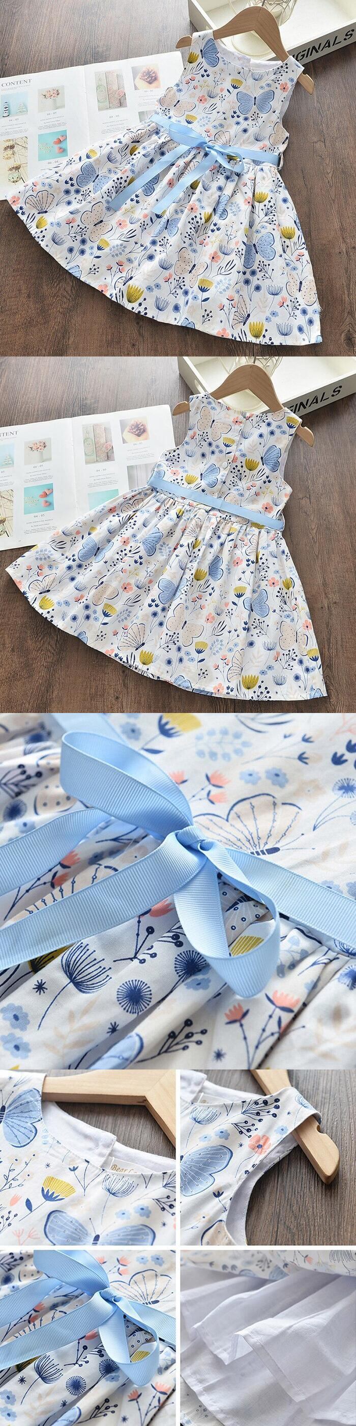 ドレス サマーノースリーブフローラルButterflyデザイン コットン 大人ガーリー スウィート キュート カジュアル 夏物 キッズ 花柄 mi5341185077606