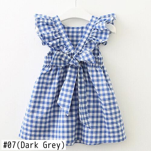 サマーボタンカラー格子柄ドレス バックレスドレス ワンピース 夏物 キッズ mi5384634698922