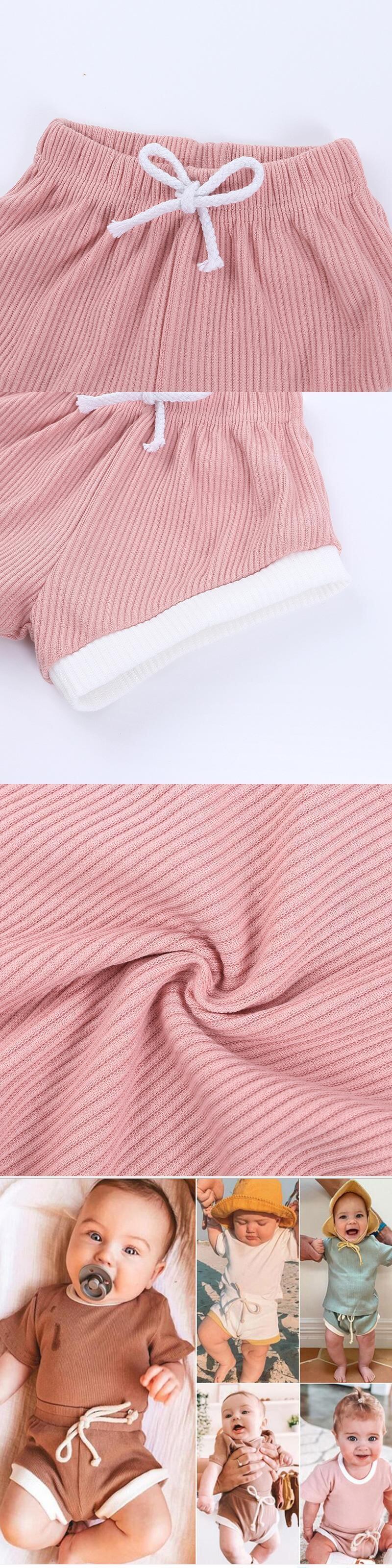サマーリブニット半袖スリーブ ショート ハーフスリーブ シャツ 夏物 キッズ ショーツ ブルマー Tシャツ mi5341086501564