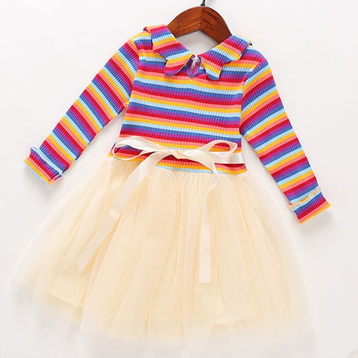 スプリングドレス メッシュストライプドレス ワンピース 春物 キッズ mi5317533586742