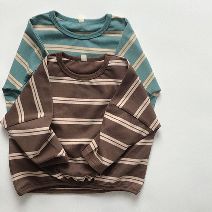 スプリングオータムストライプ長袖スリーブTシャツ スタイルプルオーバー ロング コットン 春物 秋物 キッズ mi5317732938279
