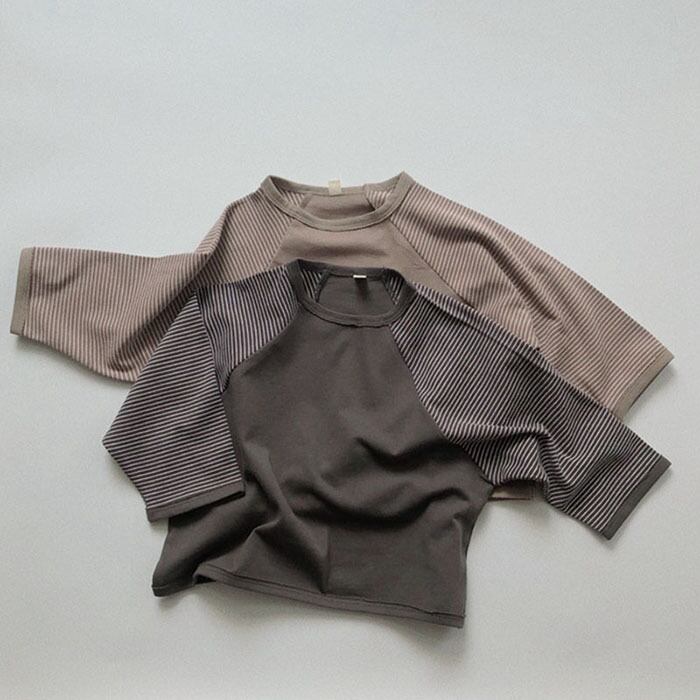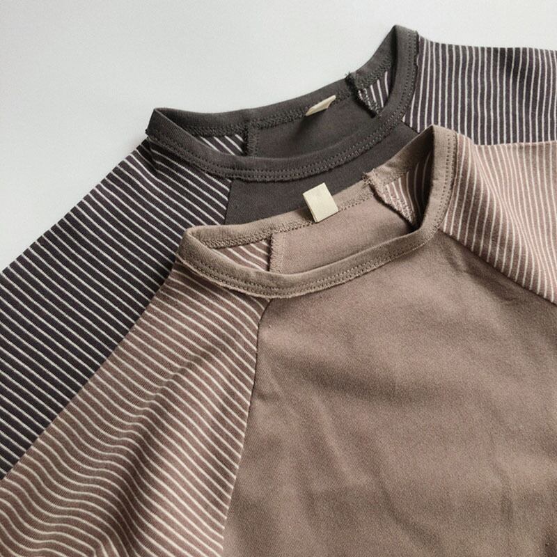 スタイルスプリングオータム長袖スリーブストライプTシャツ トップス プルオーバー ロング コットン 春物 秋物 キッズ mi538245151075