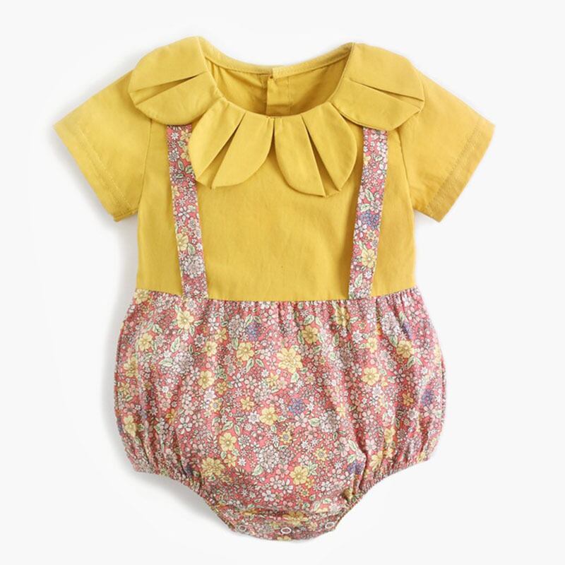 サマー半袖スリーブFlowerデザイン ロンパース オールインワン ジャンプスーツ オールインワン ショート コットン ハーフスリーブ 夏物 フラワーデザイン mi5391416965749
