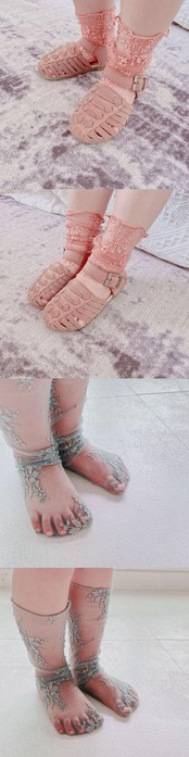 サマーFlowerデザイン レースメッシュソックス 薄手ストレッチ エラスティック 伸縮 夏物 タイツ ストッキング フラワーデザイン mi5347493766250