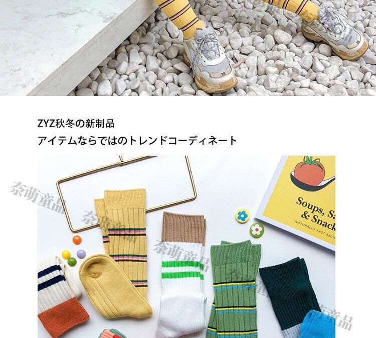 オータムソックス ダブルカラーストライプ コットン 秋物 タイツ ストッキング mi5312458589528