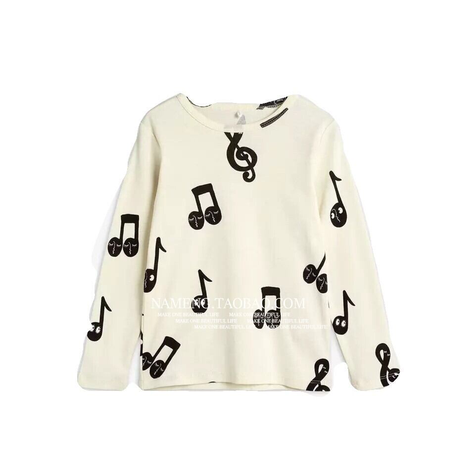 色:ベージュのノートバッグおなら服,オフホワイトノート長袖T,オフホワイトの音符レギンス,オフホワイトのノートドレス