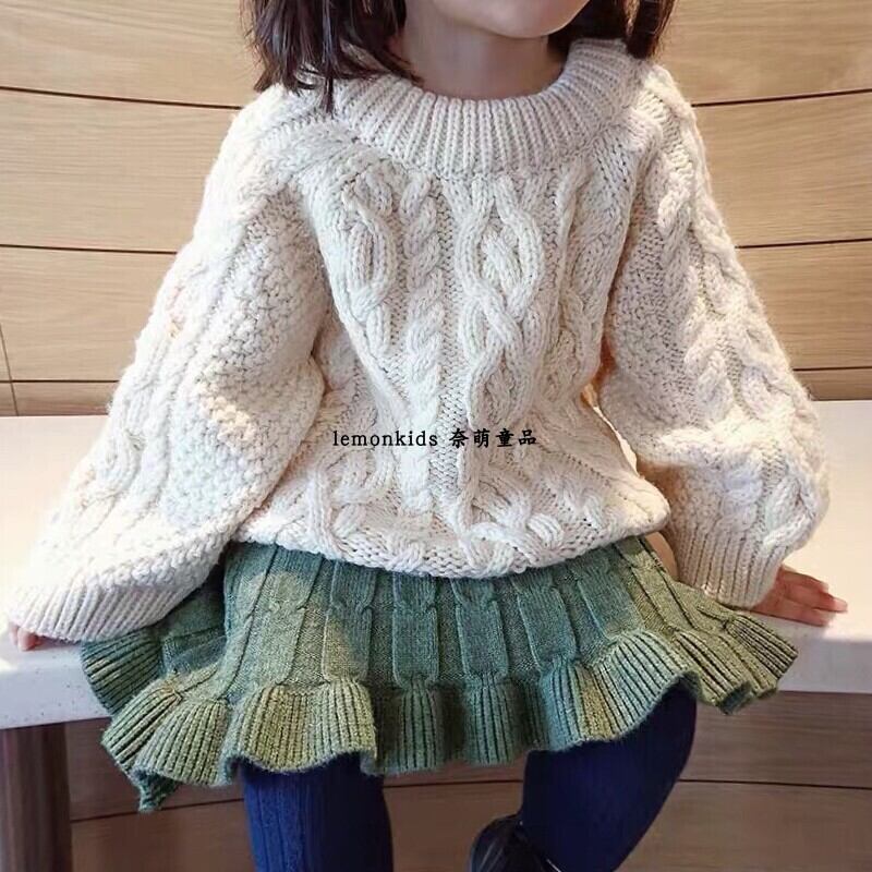 色:ベージュのセーター,緑のスカート,ラッフルカラーシャツ,刺繡サスペンダースカート