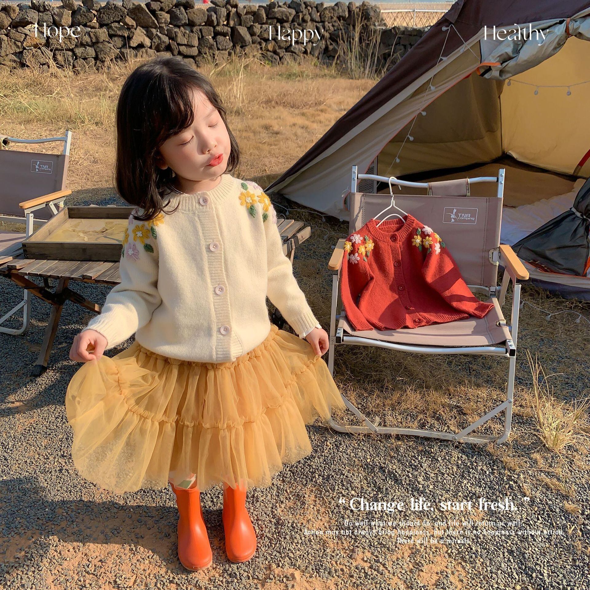 刺繍スプリングジャケット ニット レッド カーディガン 春物 mi5368643893165