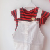 色:黒と赤のストライプのスマイリーTシャツ,白いよだれかけ
