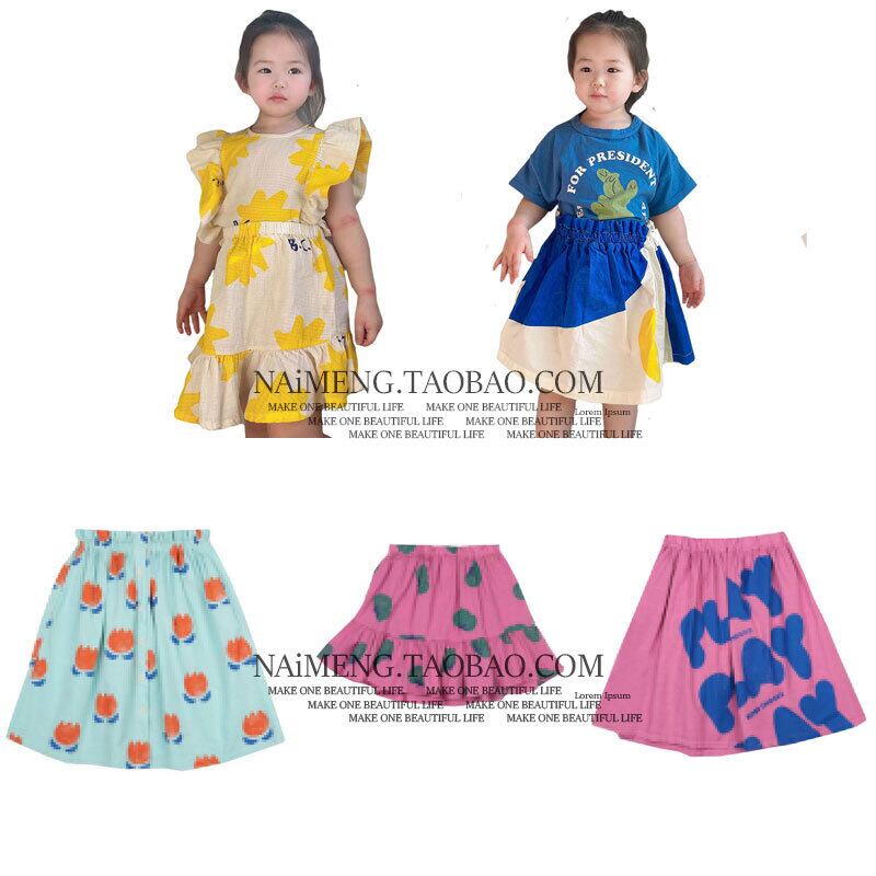 色:青と白のカラーマッチングスカート,黄色い星のスカート,ピンクのトマトスカート,ピンクのレタースカート,スカイブルーのフルプリントスカート