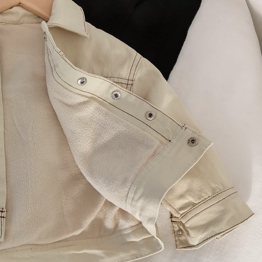 色:ベージュプラスベルベットカジュアルジャケット--K在庫あり