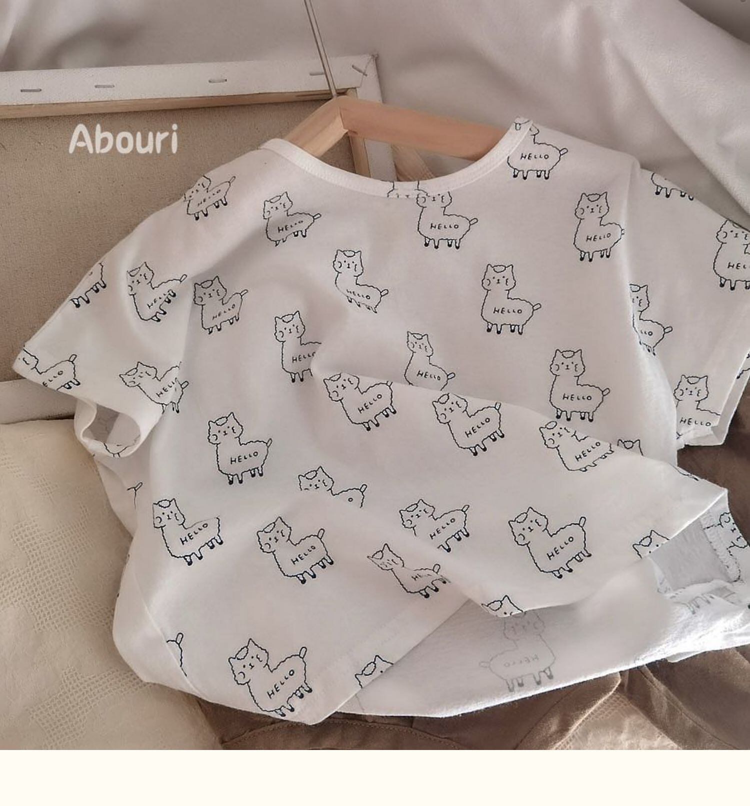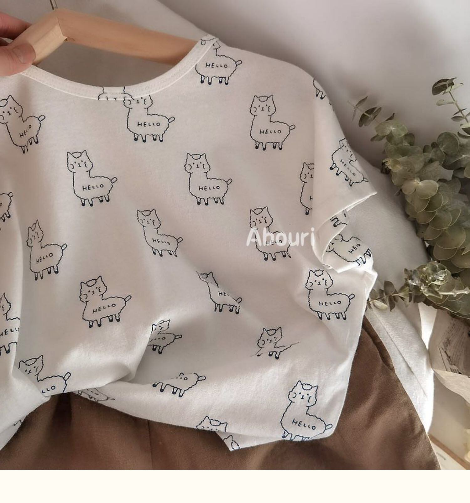 プリント柄ラウンドネックTシャツ サマー コットン 夏物 Oネック 5/6 mi5332913222329