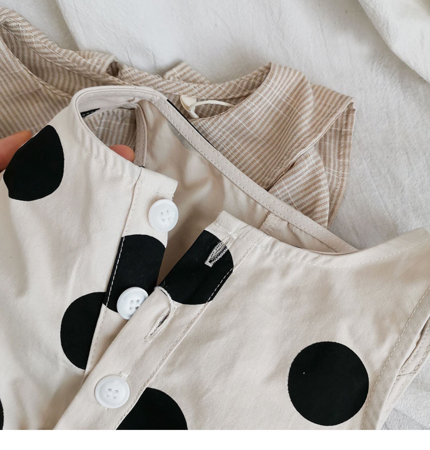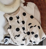 色:ベージュの水玉模様のオーバーオールがワンサイズ小さめ