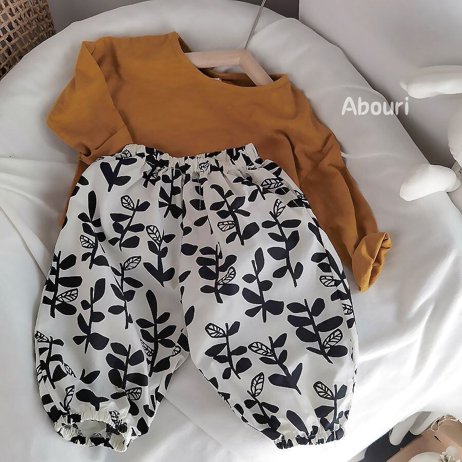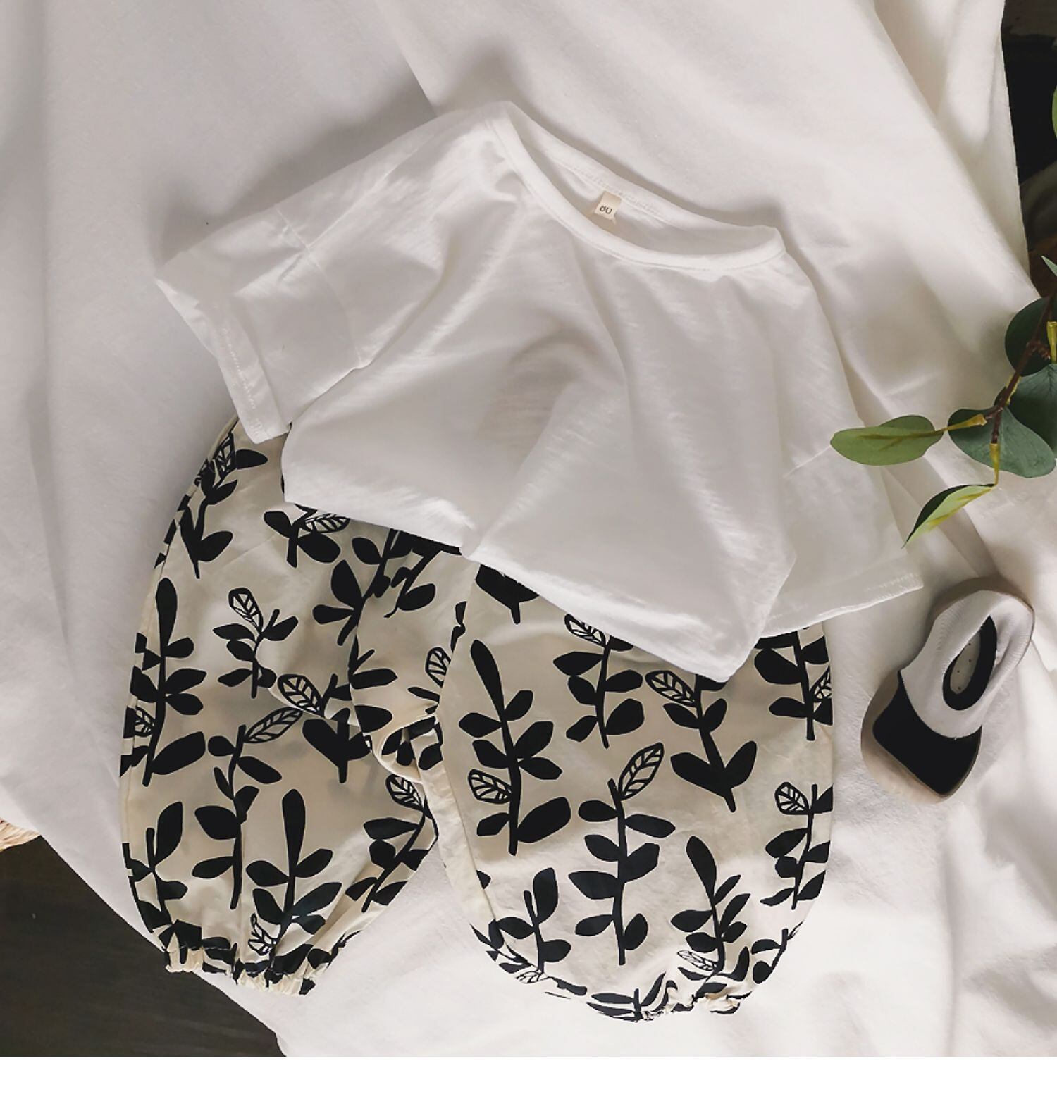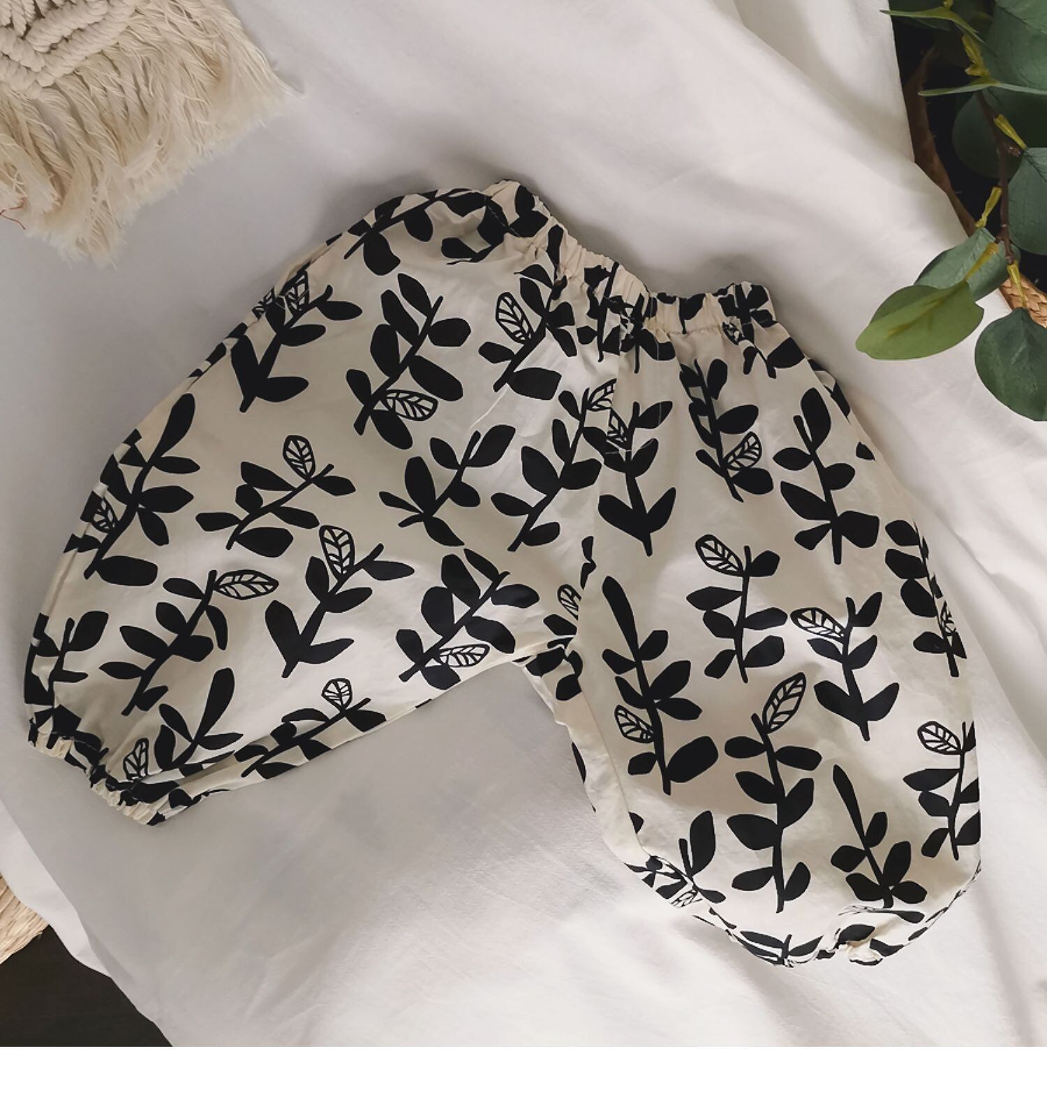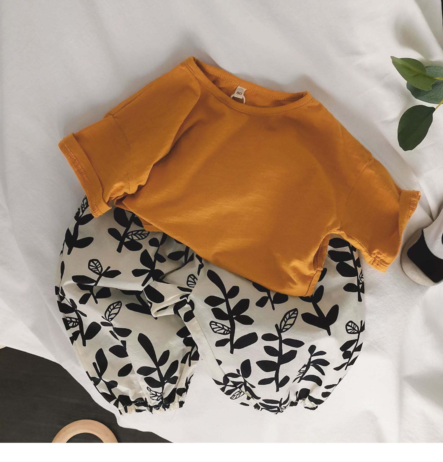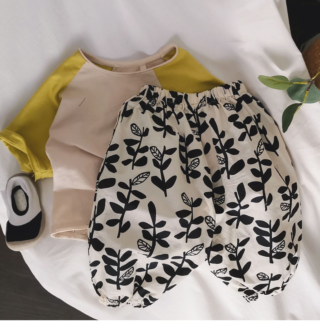 色:黒と白の葉の蚊パンツ(1101#),温かみのある黄色のカーブした半袖Tシャツ30500#