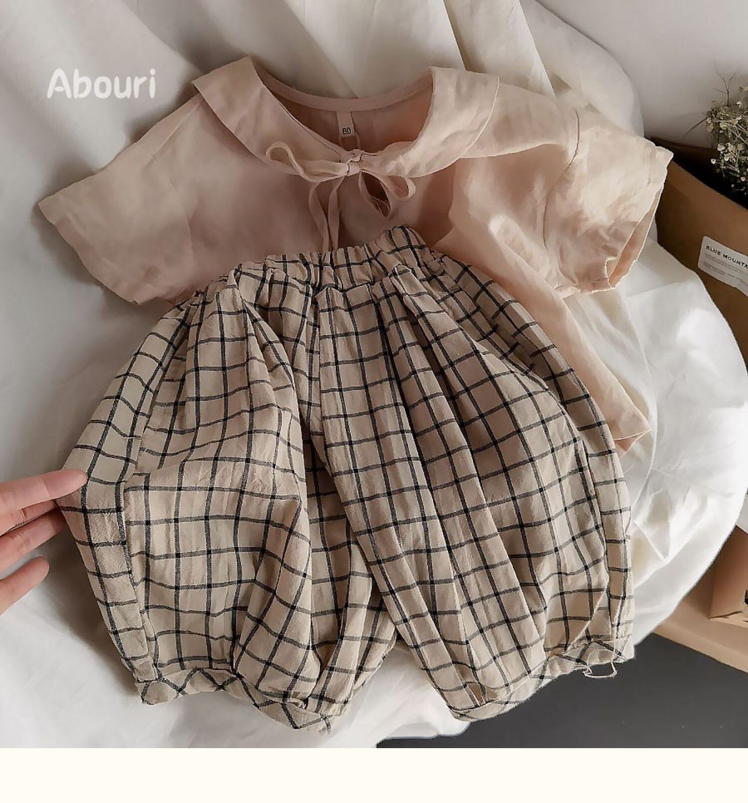 色:コットンとリネンのチェッカートップ1263#シングルトップ,コットンとリネンのチェッカーブルマ1265#シングルパンツ