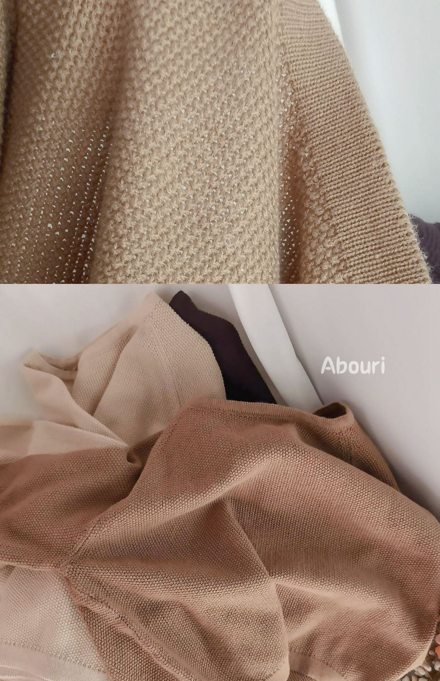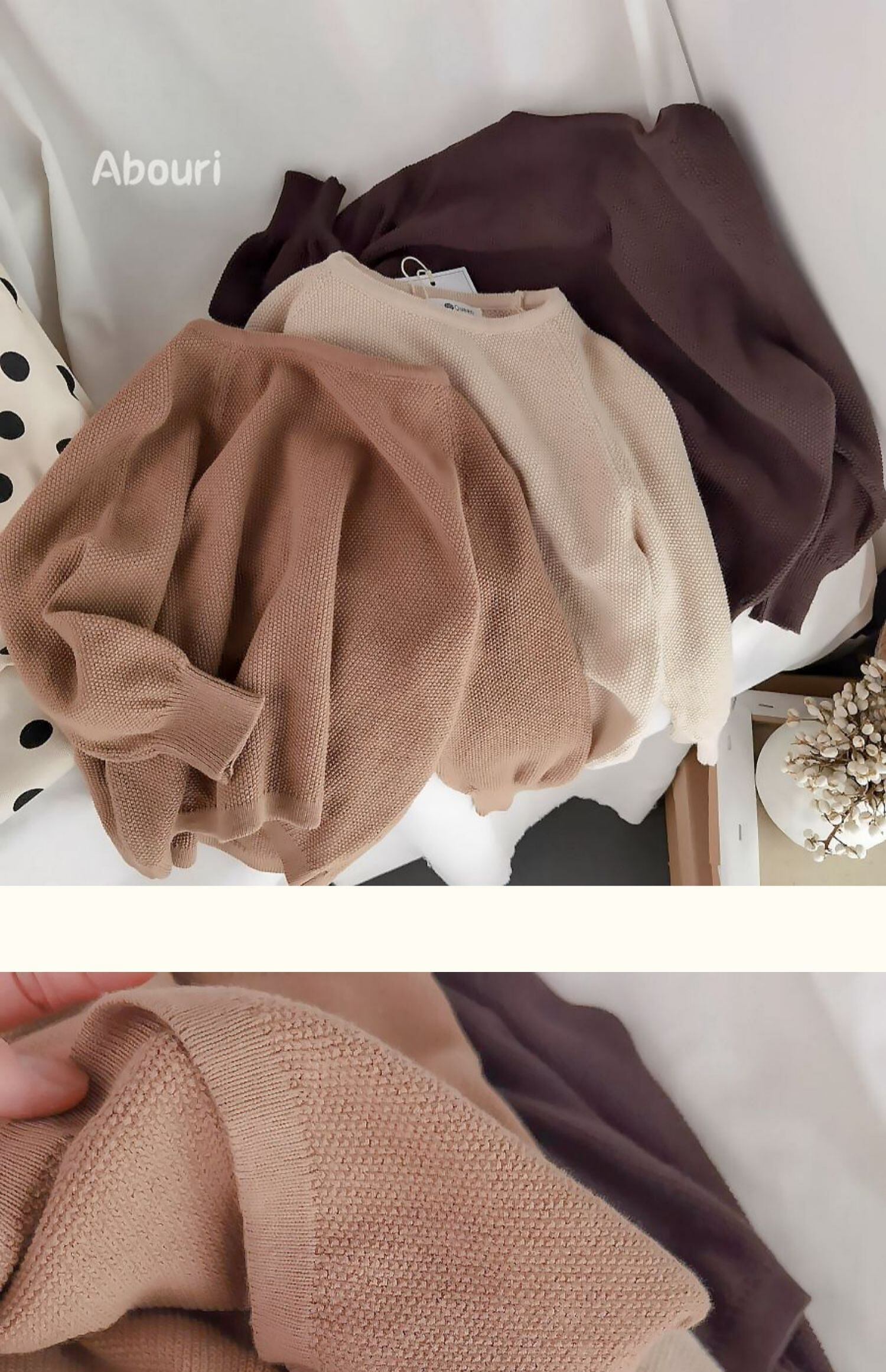 色:茶色の薄いニットセーター,ベージュの薄いセーター,カーキ薄セーター
