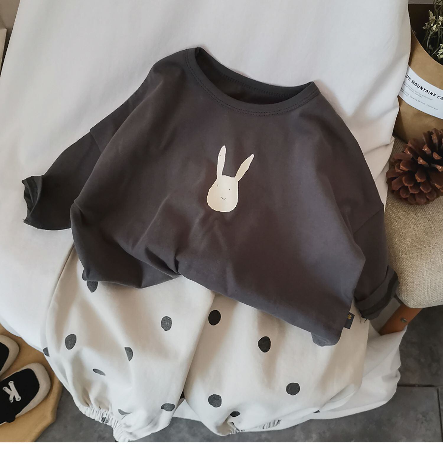 色:アプリコットビームレッグハーレムパンツ--AV,Ceeカラービームレッグハーレムパンツ--AV,黒とグレーのバニーTシャツ