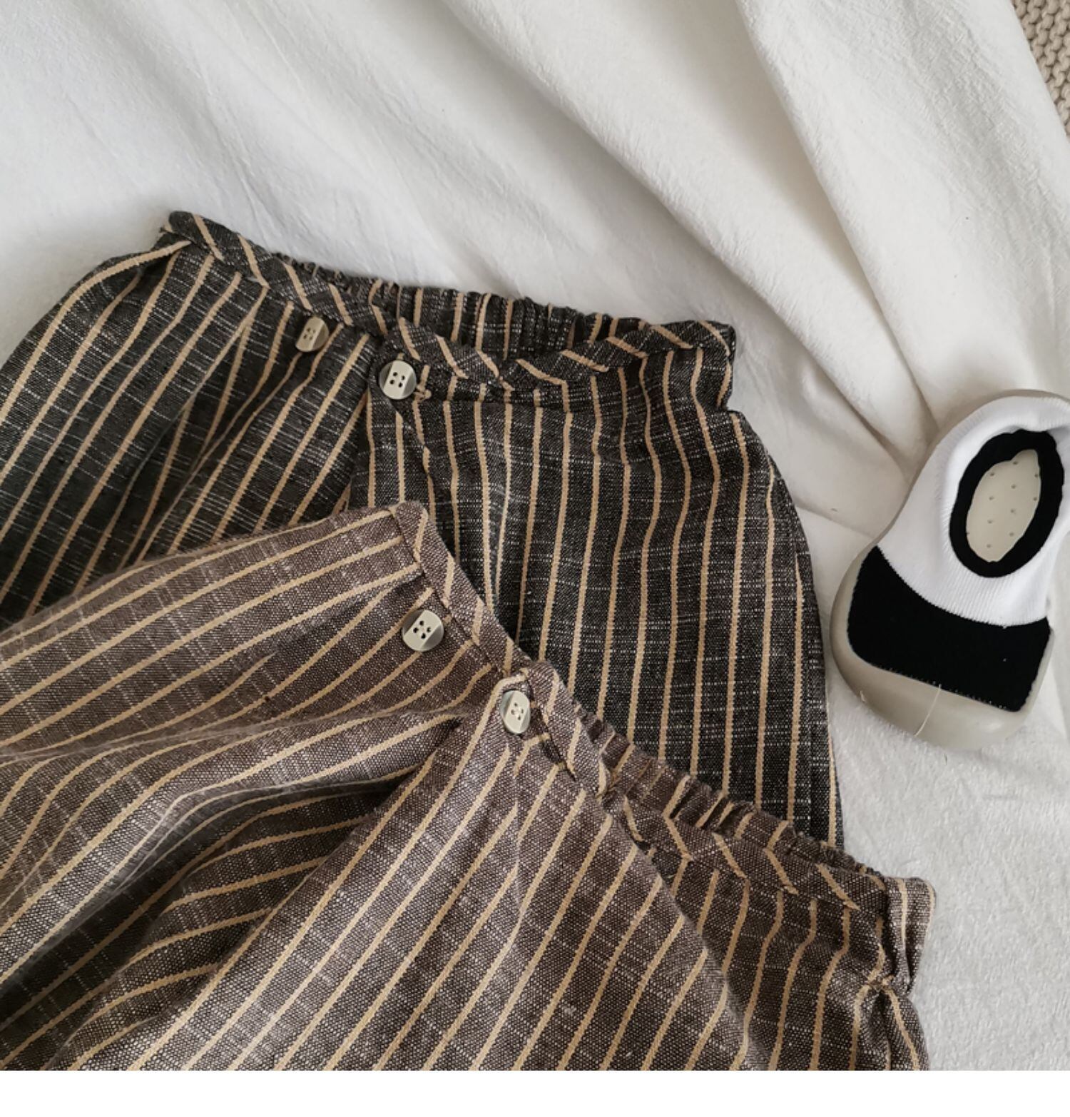 スタンダードパンツ ルーズウェストストライプスプリング コットン レトロ 春物 5/6 mi5391976713966