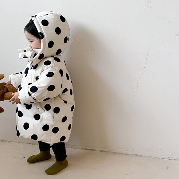 色:ベージュボトムビッグ水玉コットンコート(予定)が大きすぎます,黒底の大きな水玉模様のコットンパッド入りジャケット(予定)が大きすぎます