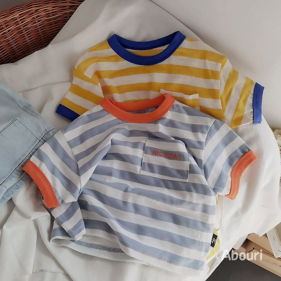 色:ターメリックヒットカラーストライプTシャツ7351#1週間予約,ライトパープルヒットカラーストライプTシャツ7351#1週間予約,スモークブルーのコントラストカラーストライプTシャツ7351#1週間予約