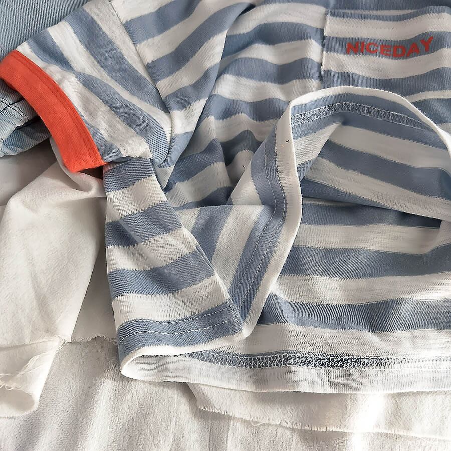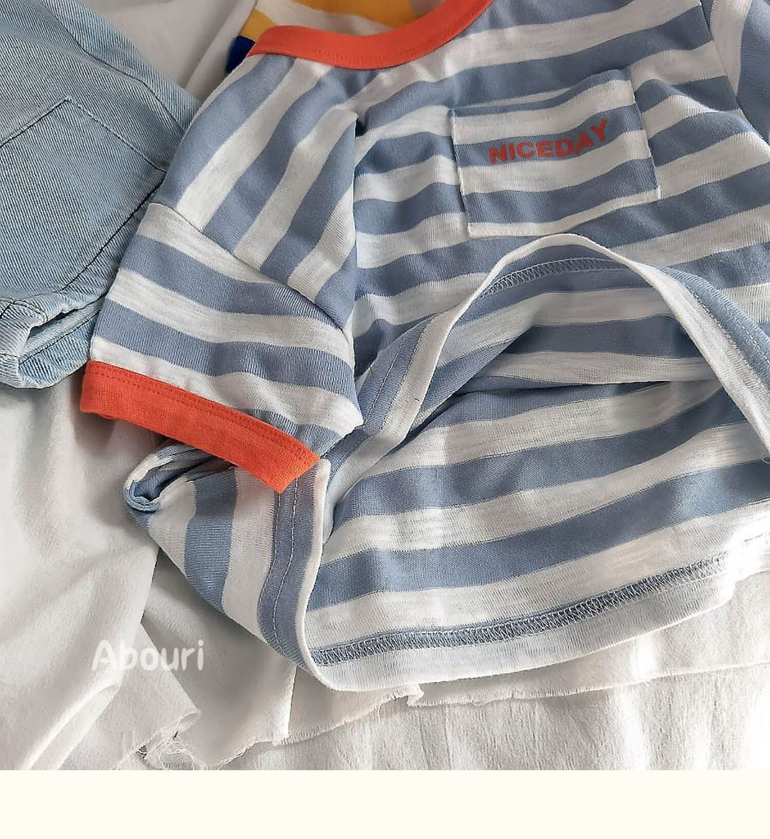 スタイルストライプトップス カラーTシャツ サマー コットン 夏物 5/6 mi5335713812620