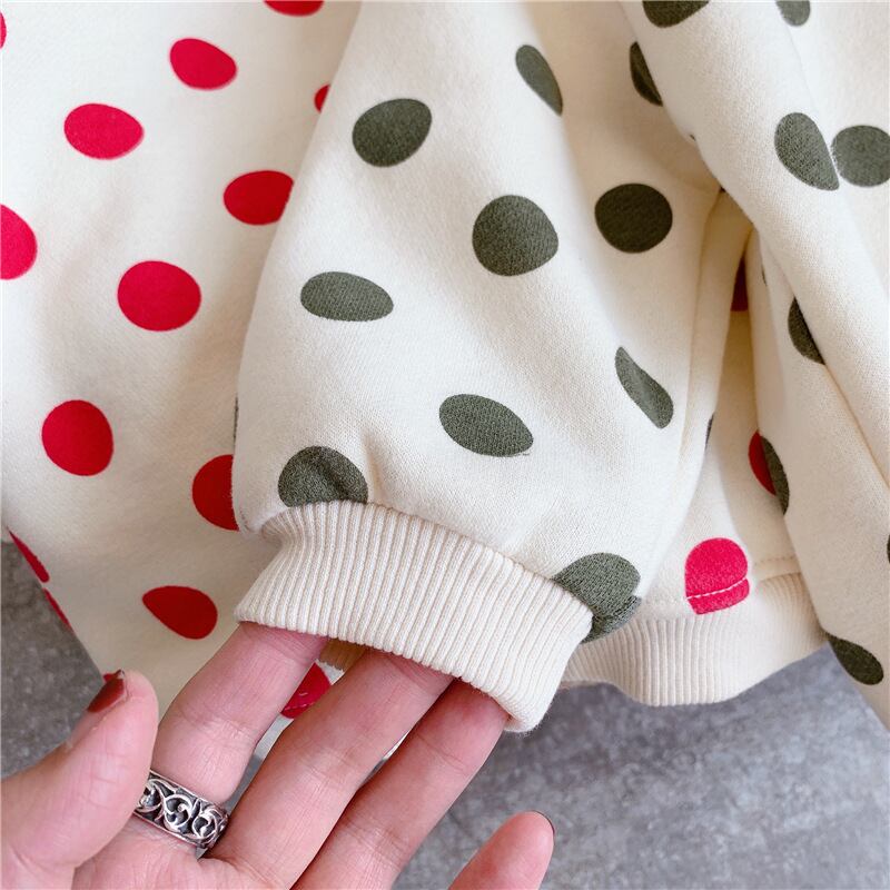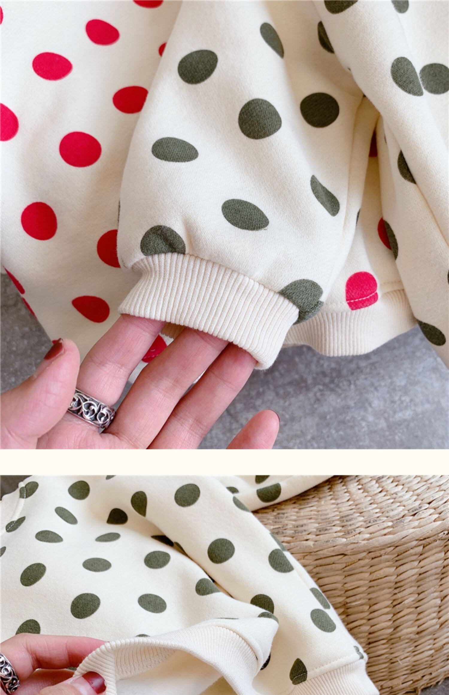 色:グリーン水玉フリーススウェットシャツ,メロンレッドの水玉フリースセーター