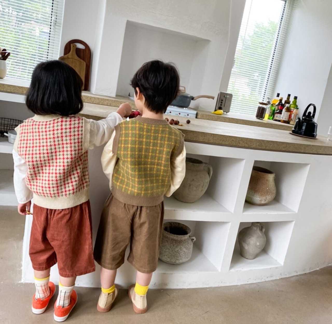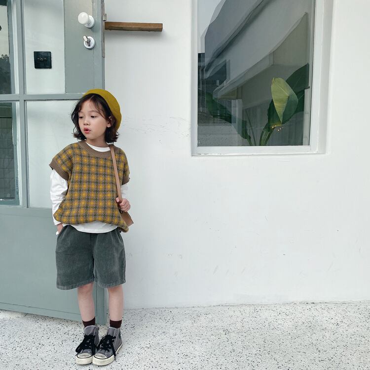 色:イエロースタイルのヴィンテージウールベスト-B,カーボングレーコーデュロイ5点パンツ-B