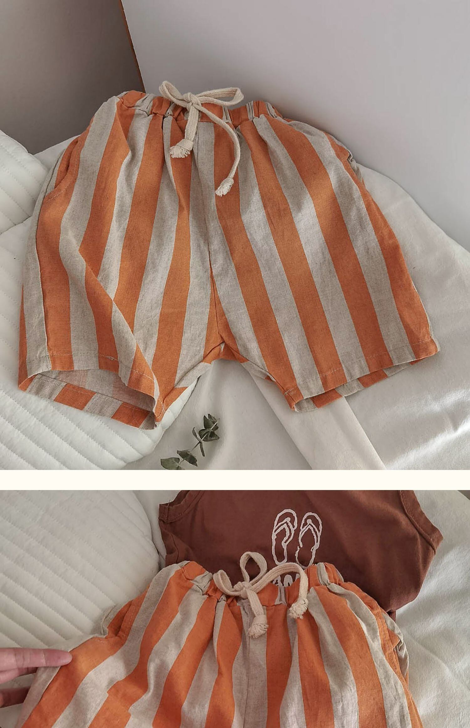 ルーズプリントストライプショーツ スタイルカジュアルパンツ サマー コットン 夏物 ブルマー 5/6 mi5359048930152