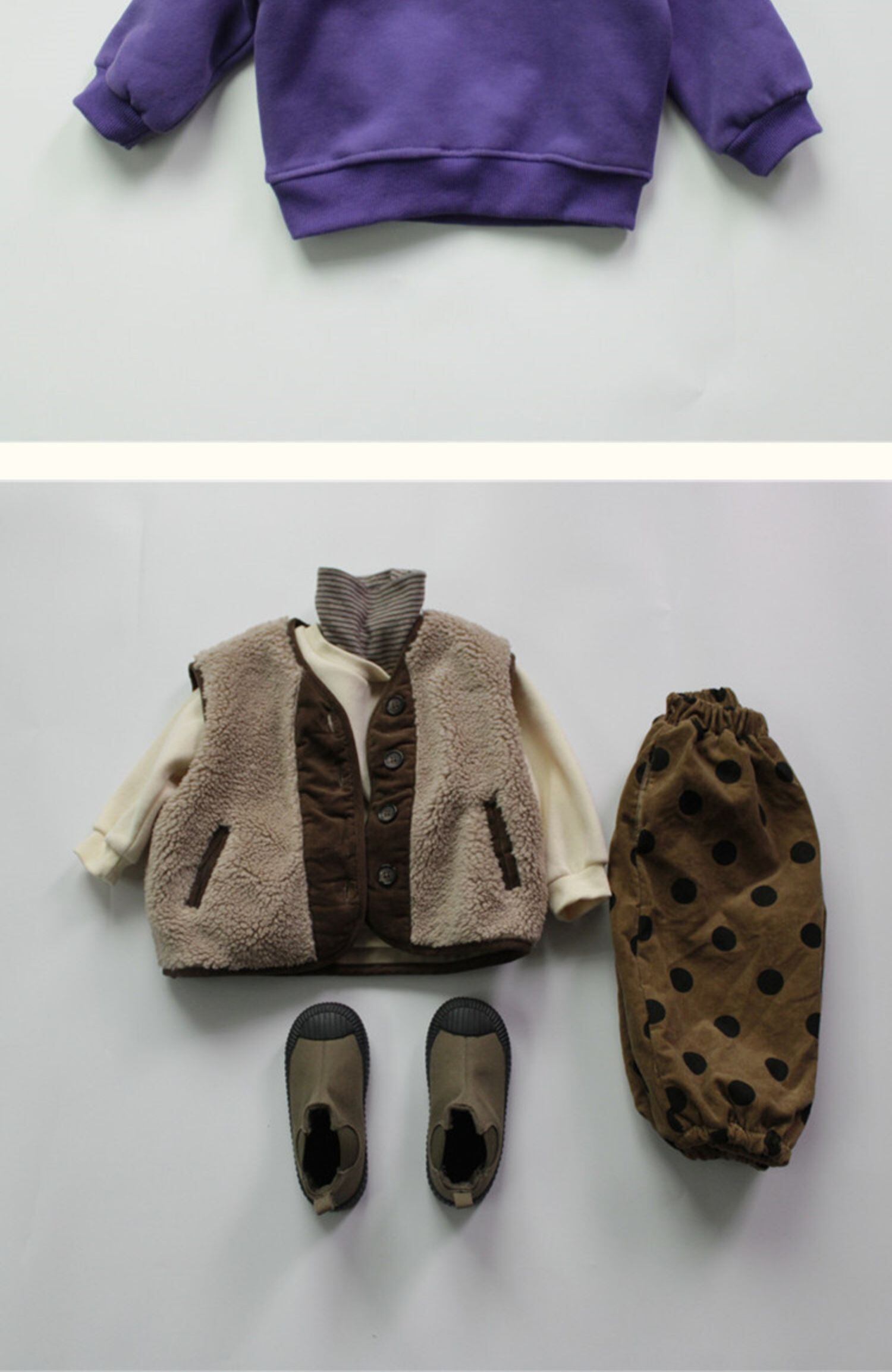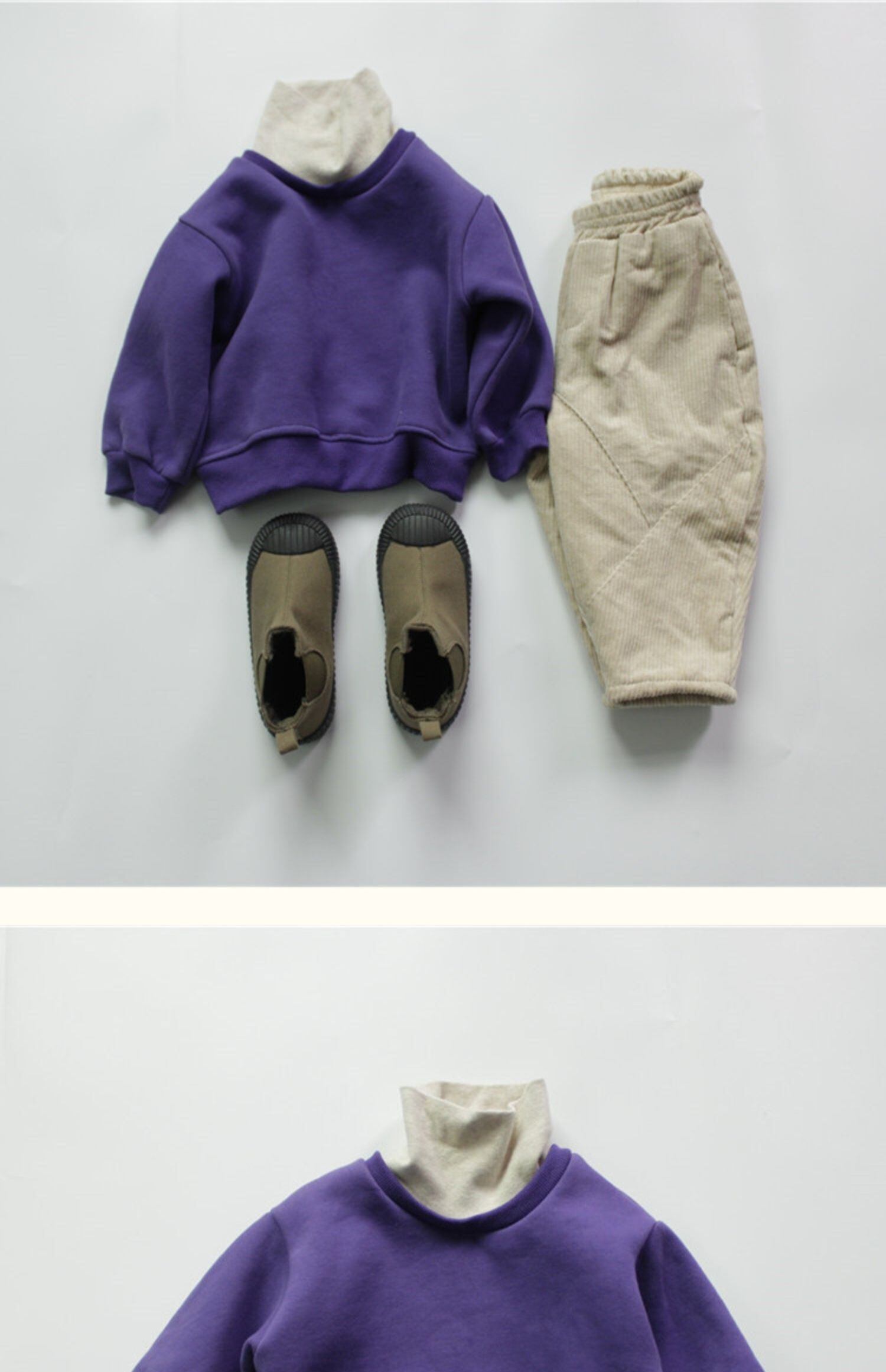 色:パープルのフェイクツーピースセーター--BB,アーミーグリーンフェイクツースウェットシャツ--BB,ベージュのフェイクツーピースセーター--BB