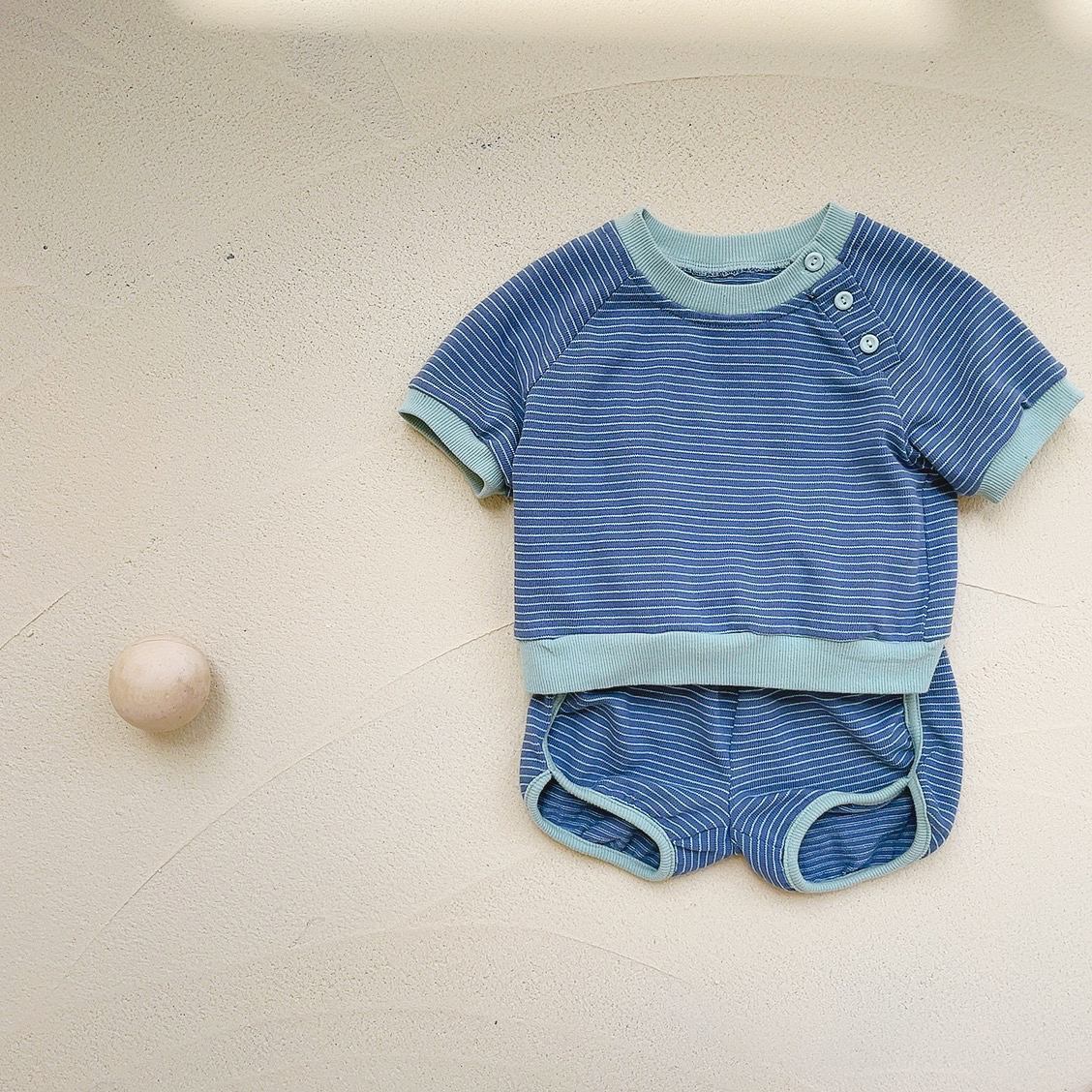 サマーストライプTシャツ ショーツ ルーズカジュアルスタイル 夏物 ブルマー 5/18 mi5352599791492