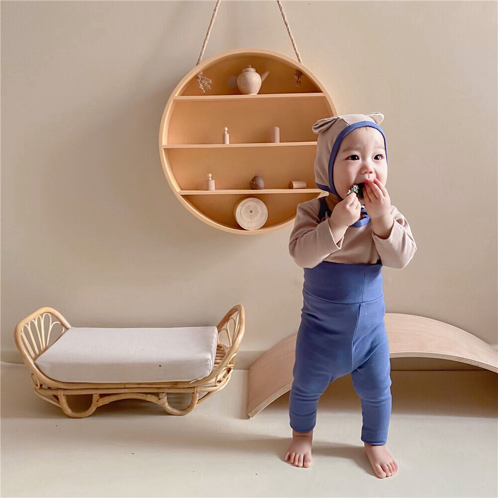 色:スイカレッドトップ+オレンジパンツ+帽子,Grグリーントップ+グレーパンツ+帽子,ライトブルーのトップス+シーパンツ+帽子,カーキトップ+ネイビーブルーパンツ+帽子