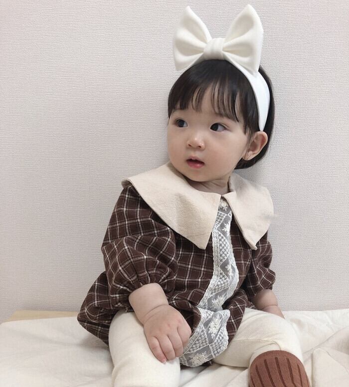 格子柄スタンダードトライアングルロンパース オールインワン スプリングオータム ロング レトロ 春物 秋物 5/18 mi5396829747905