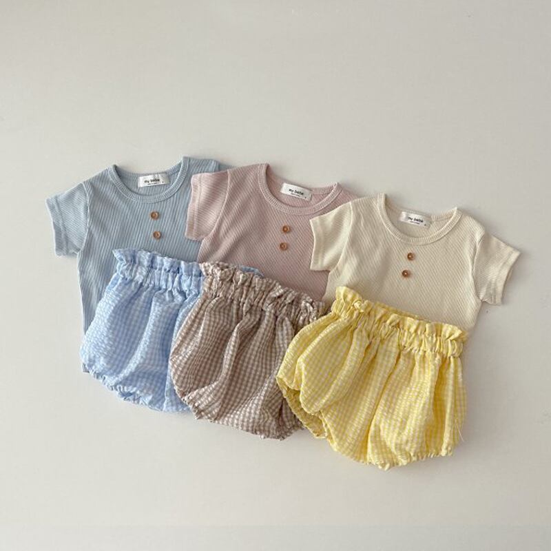 色:黄色のtシャツショートパンツ,ブルーTシャツ+ショーツ,レザーピンクTシャツ+ショーツ