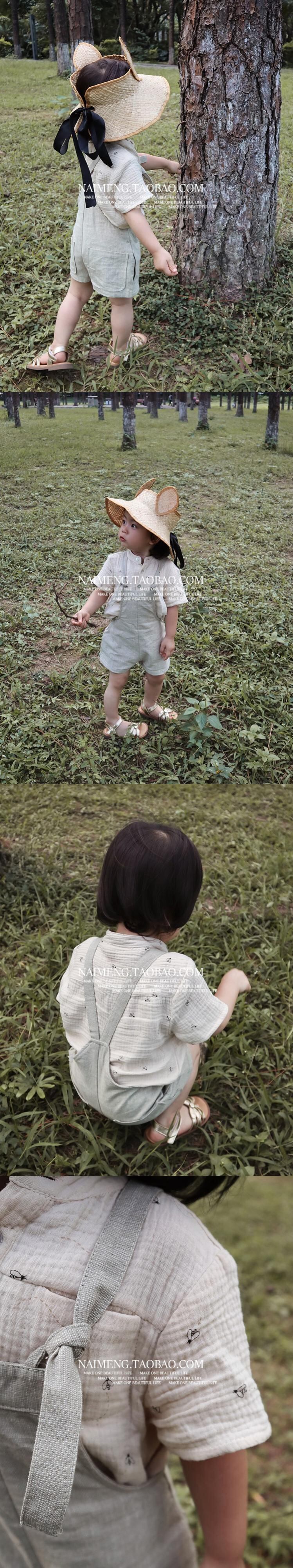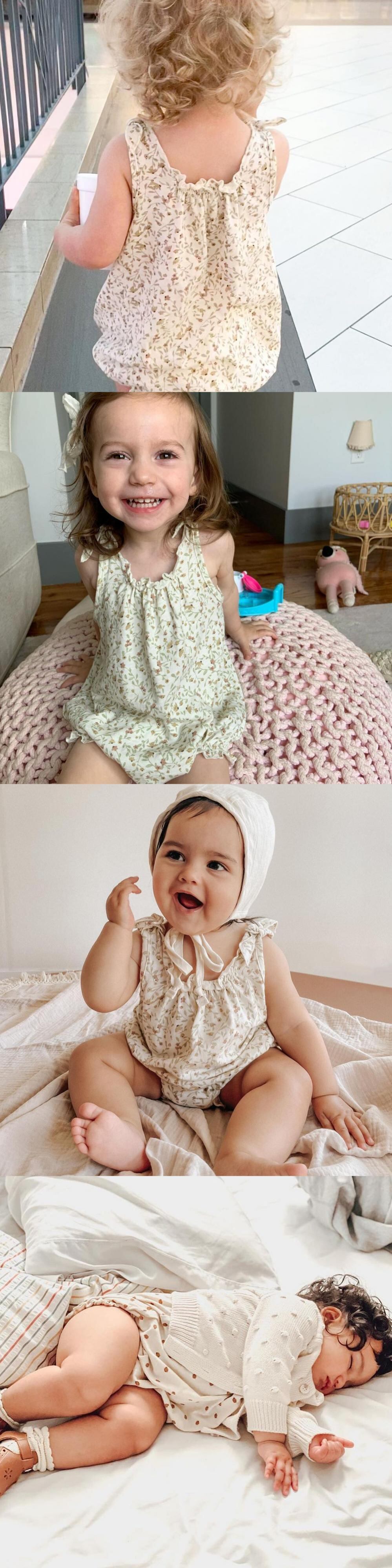 色:ビーTシャツ,ライトグリーンのTシャツ,薄緑色のオーバーオール,ダークグリーンのショートパンツ,ベージュベジタブルプリントボディスーツ,ダークグリーンのポットプリントジャンプスーツ,バイクプリントジャンプスーツ,トンボのオーバーオール,黄色い花のオーバーオール,てんとう虫ロンパース,フローラルハーレー,てんとう虫ショーツ,フローラルショーツ,アプリコットトップ,ブルートップ,アプリコットショーツ,ブルーショートパンツ,アプリコットスカート,青いローブ,ビーロンパース,薄緑のロンパース