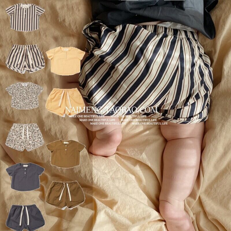 色:黄色のシャツ,黄色のショートパンツ,ブラウントップ,ブラウンショートパンツ,ダークブルーグレートップ,ダークブルーとグレーのショートパンツ,恐竜トップ,恐竜ショーツ,ストライプトップ,ストライプショーツ