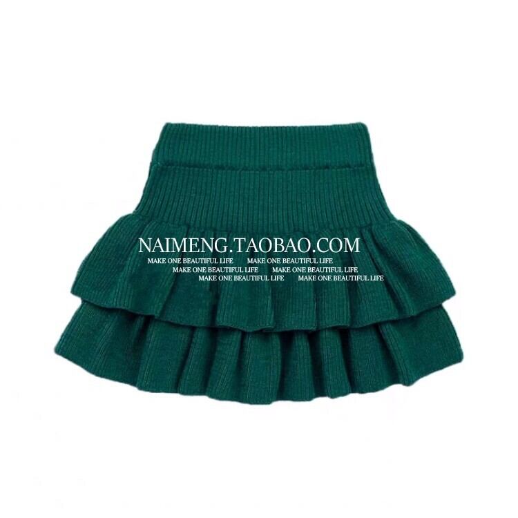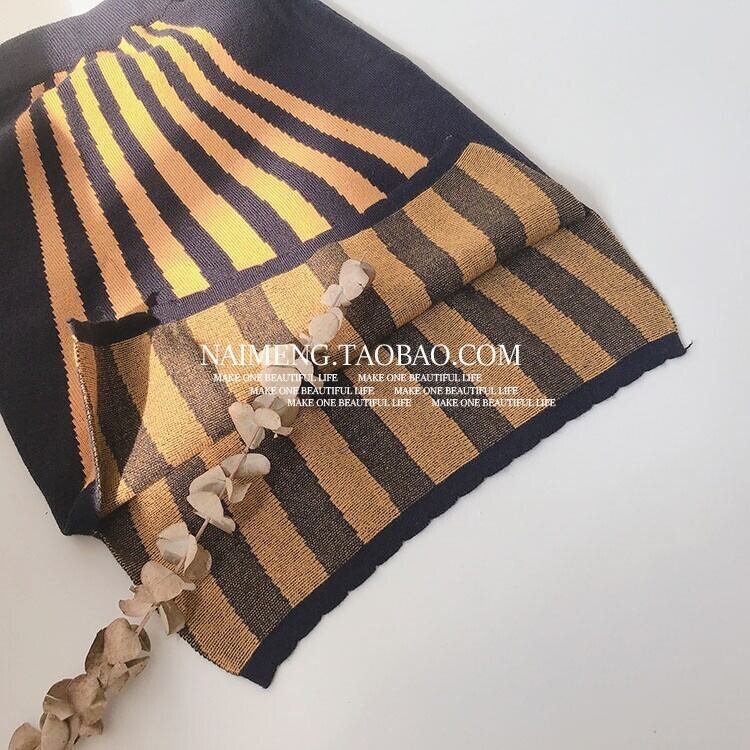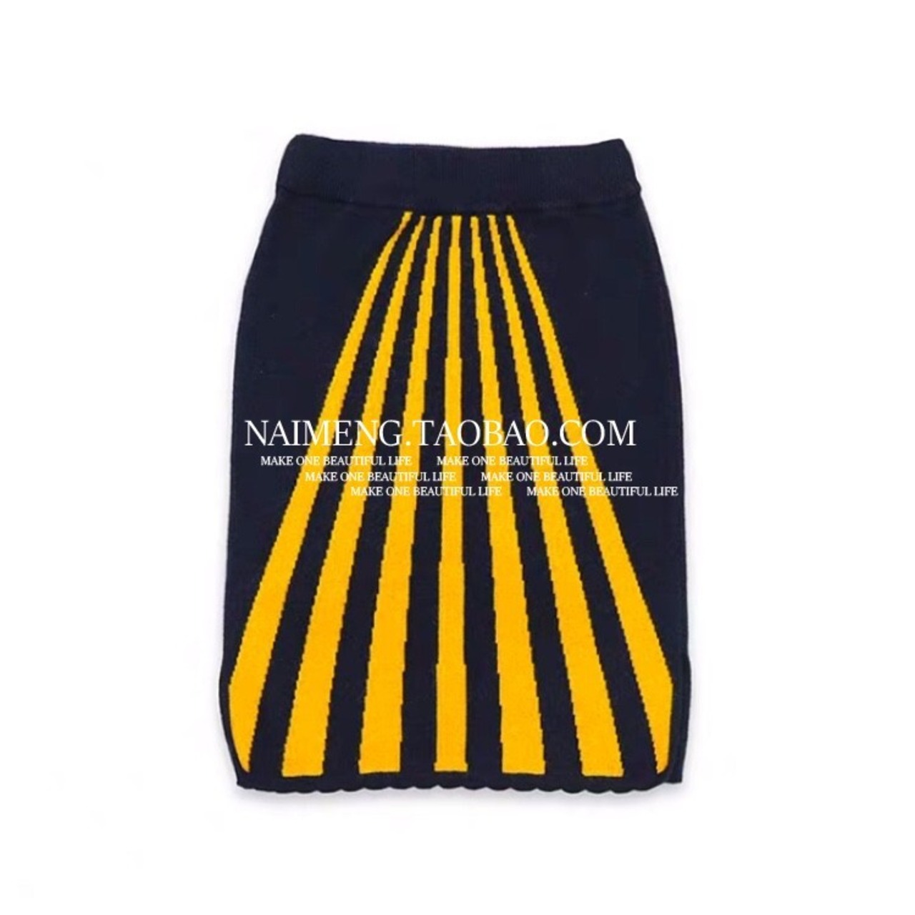 色:黄色と青の縦縞スカート,イエローサークルウール糸サスペンダースカート,グリーンレイヤードフリルニットスカート