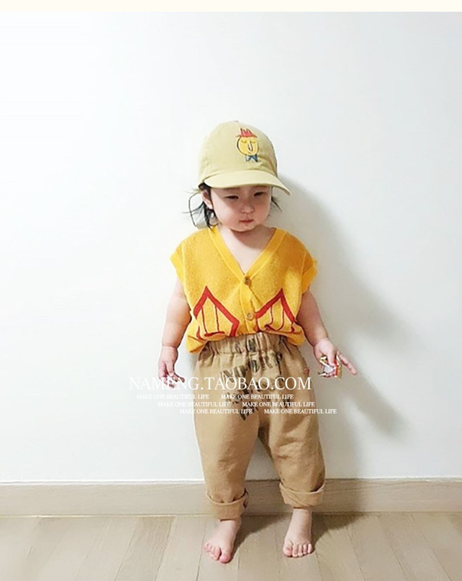 色:ベージュブラックレターTシャツ,黄色い文字のズボン,フラワーチェストラペルシャツ,ピンストライプジーンズ,黄色のプリズムニットカーディガン