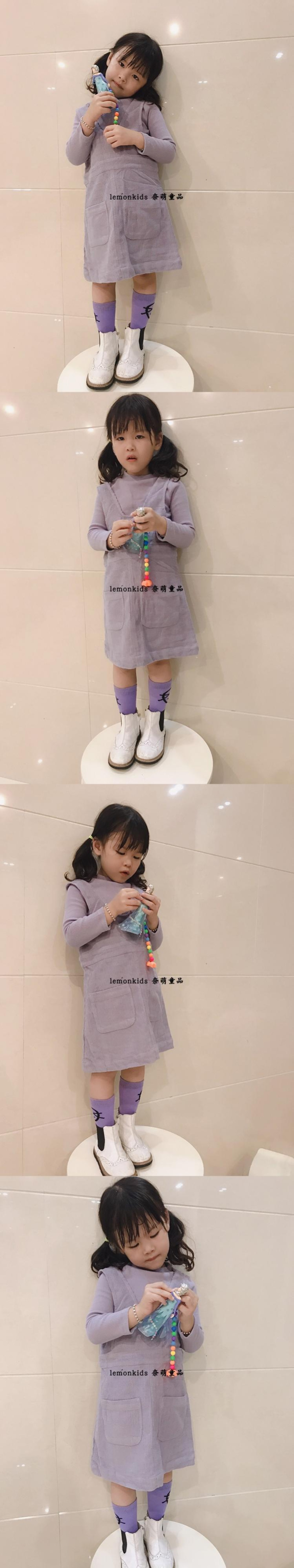 色:ウィンパープルウールブレンドカーディガン,ウィンパープルピットストリップボトミングシャツ,ウィンライトパープルスウェットパンツ,ワイパープルニット帽,ウィンパープルスマイリーフェイスソックス,ウィンライトパープルサスペンダースカート