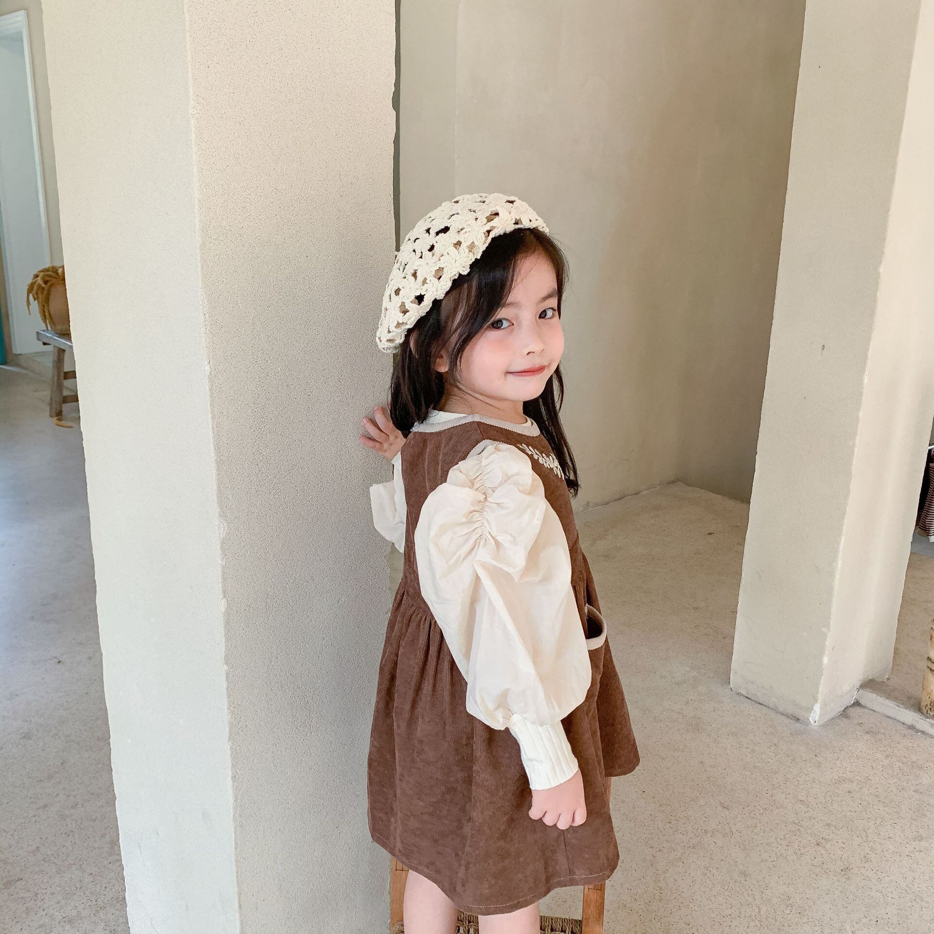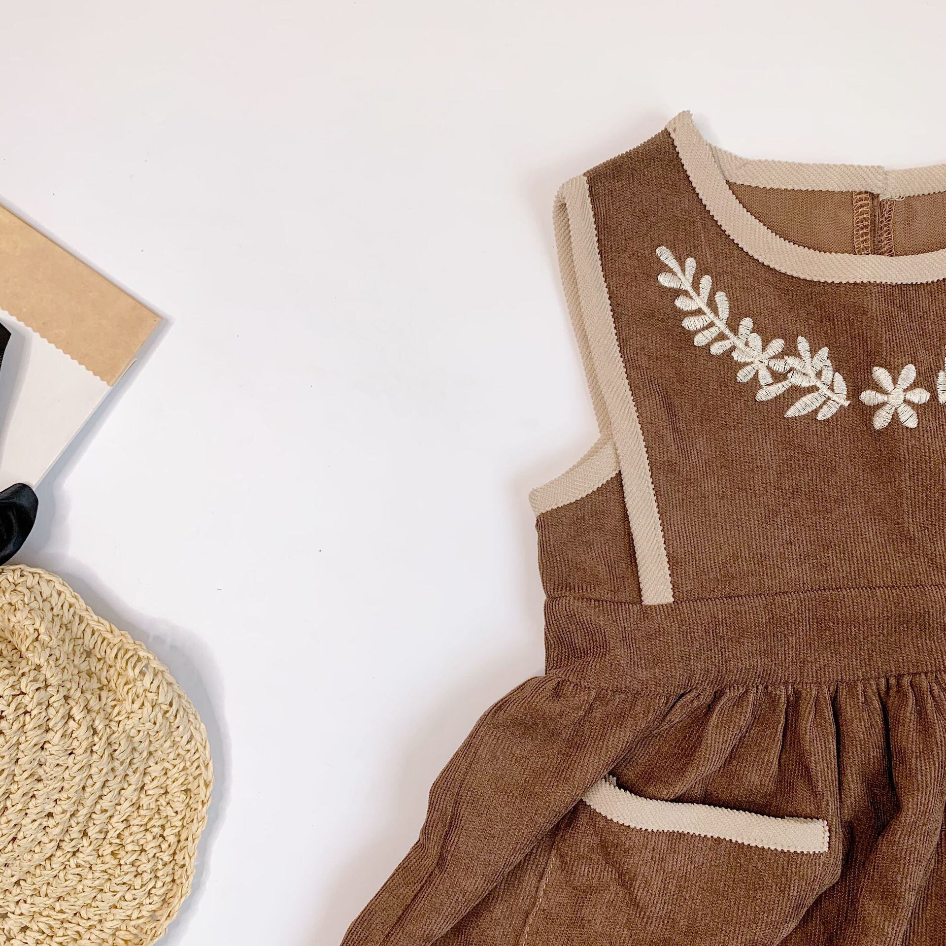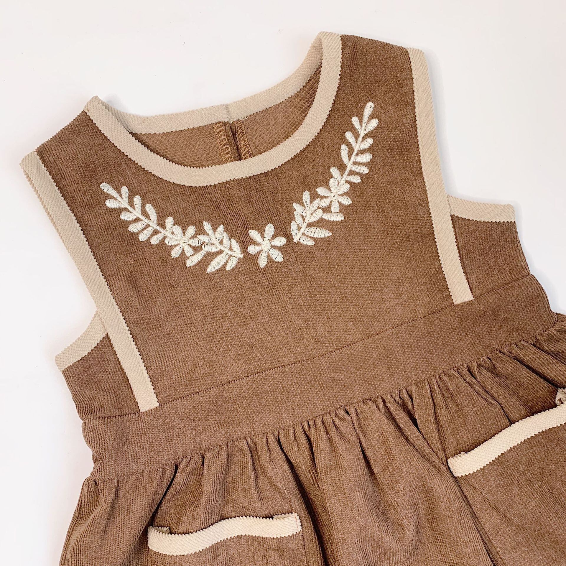 色:褐色,首と茶色のストラップドレス