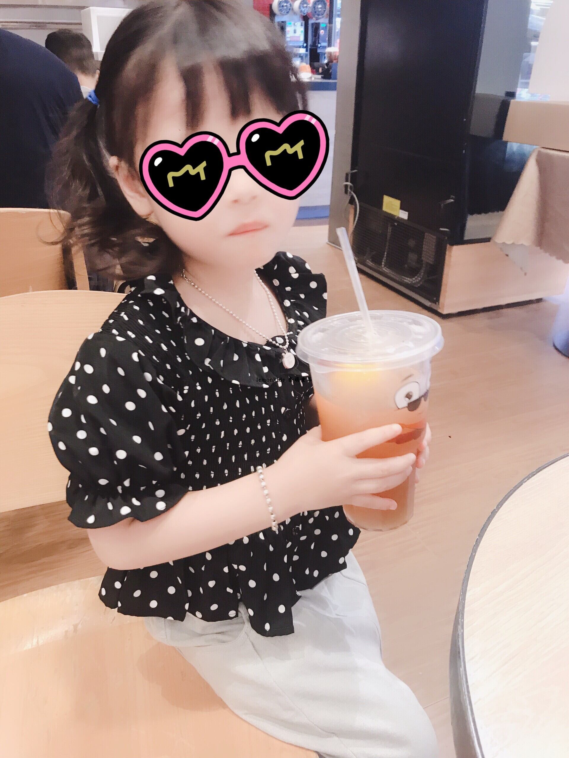 色:黒と白の水玉模様の半袖トップス,不規則な黒と白の水玉模様のブラウス