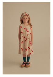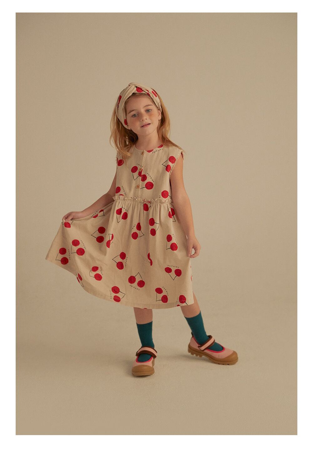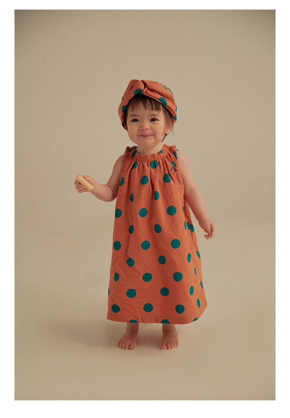色:漁師の帽子2つ,ライトグレーチェリーヘアアクセサリー,ライトグレーチェリーフルプリントドレス,オレンジ色の水玉模様のヘアアクセサリー,オレンジの水玉ドレス