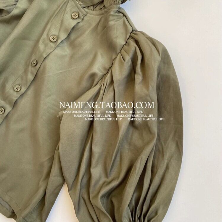 色:レースランタンスリーブシャツ-スウィートブラウン,レースランタンスリーブシャツ-アーミーグリーン