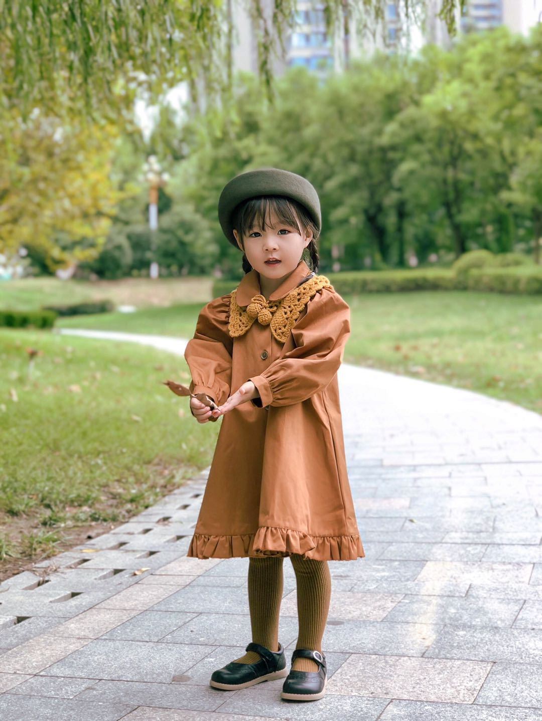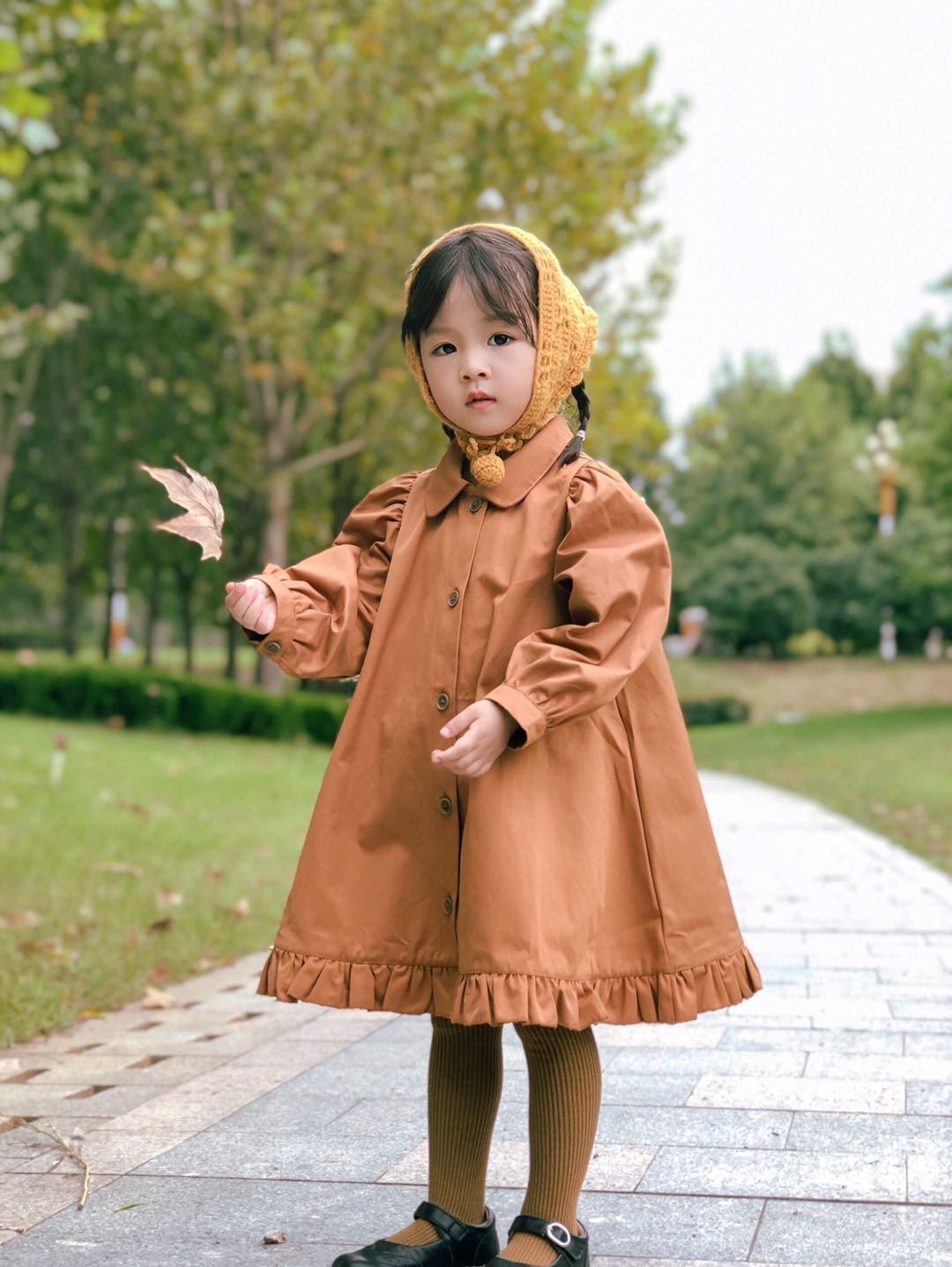 色:ベージュのフリルトレンチコート,ウコンウールスカーフ