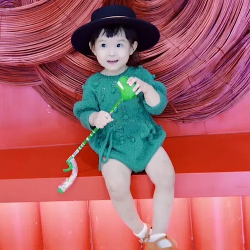 色:マスタードニットボールロンパース,クリスマスグリーンニットボールロンパース