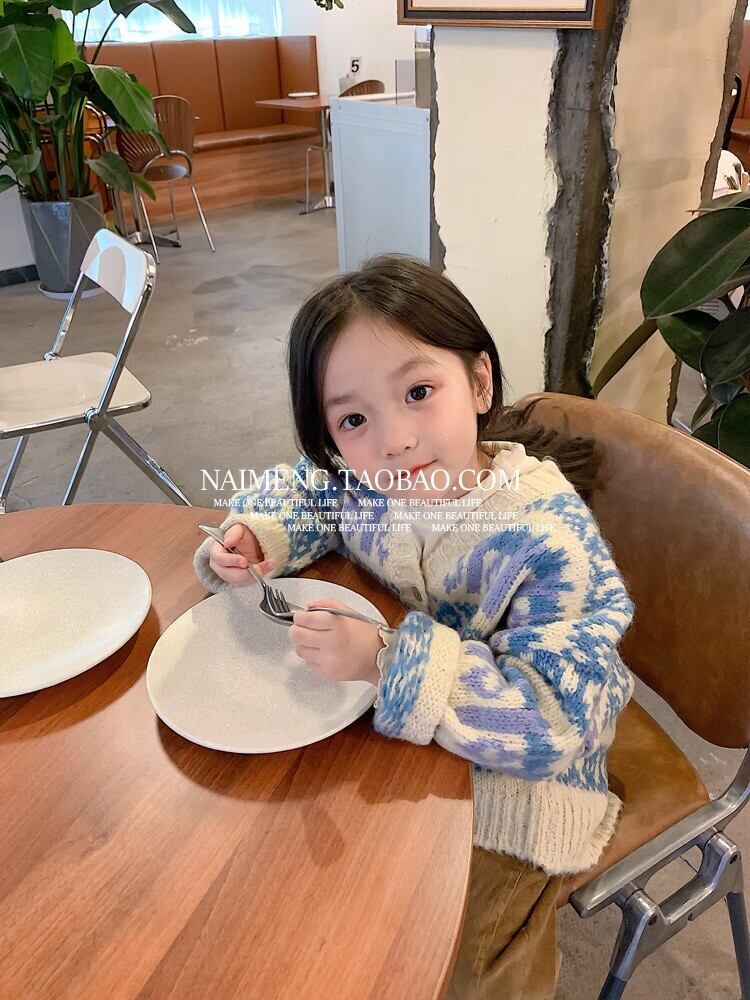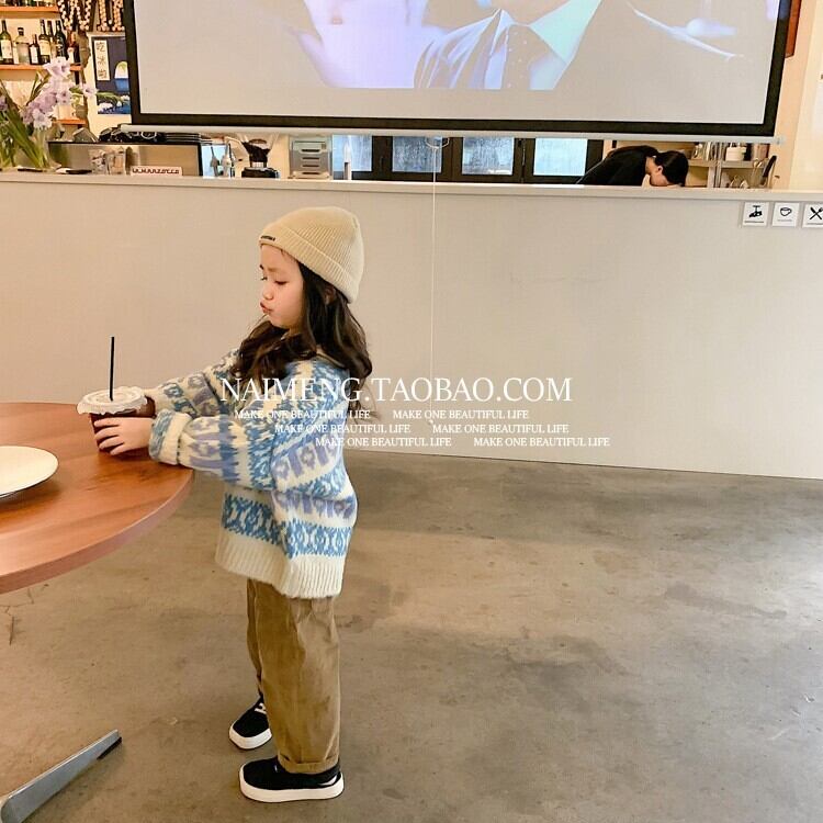 色:モヘアブルーカーディガン,カーキの籐とベルベットのパンツ