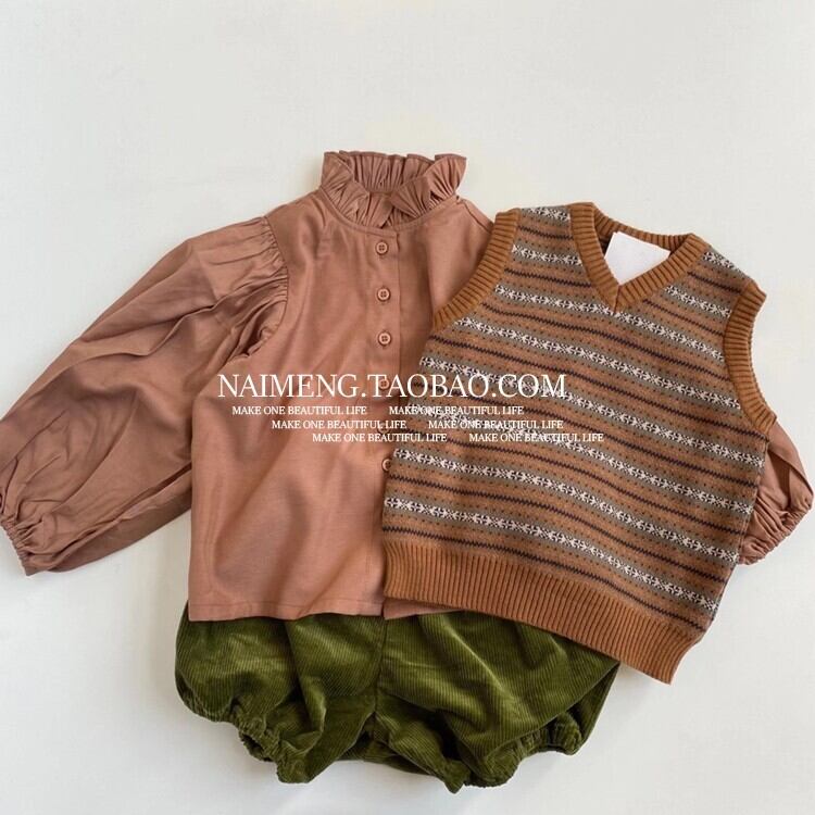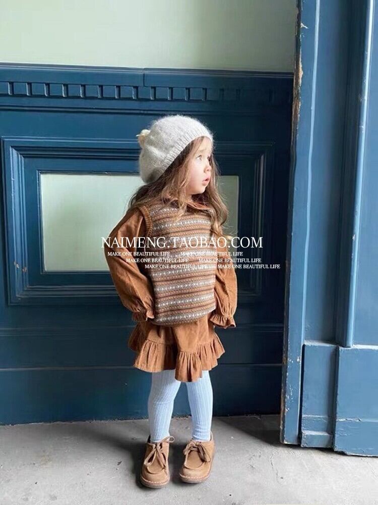 色:floessブラウンヴィンテージV字型ベスト,floessブラウンヴィンテージ長袖セーター